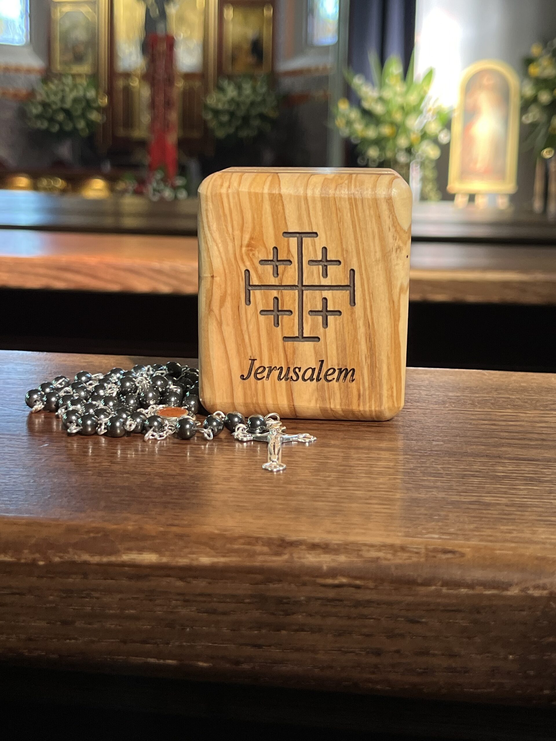 Różaniec wykonany rękami chrześcijan z Ziemi Świętej – tam, gdzie narodził się Chrystus. Każde paciorki niosą modlitwę o pokój i nadzieję dla świata. Kupując ten różaniec, okazujesz gest miłości i realne wsparcie dla rodzin, które trwają w ziemskiej ojczyźnie Chrystusa mimo trudnych warunków.
