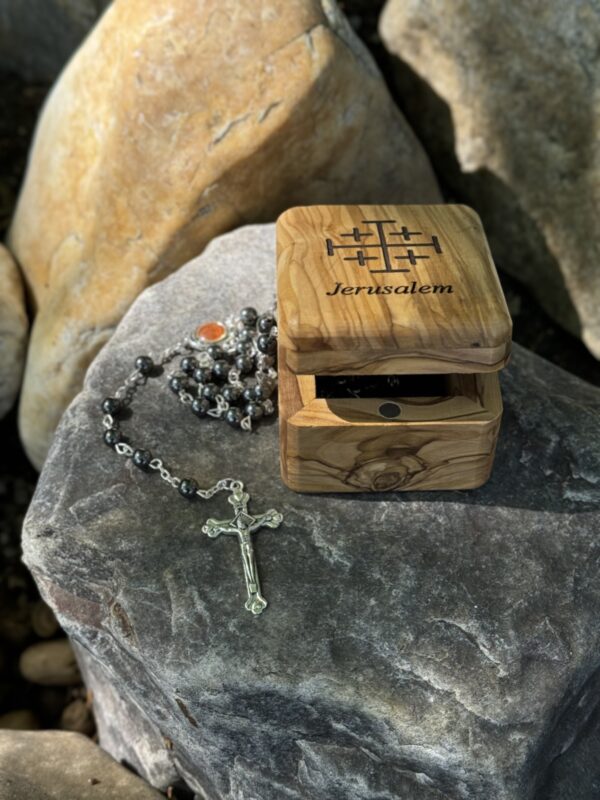 Zestaw komunijny dla chłopca | Różaniec + Pudełko z Krzyżem Jerozolimskim